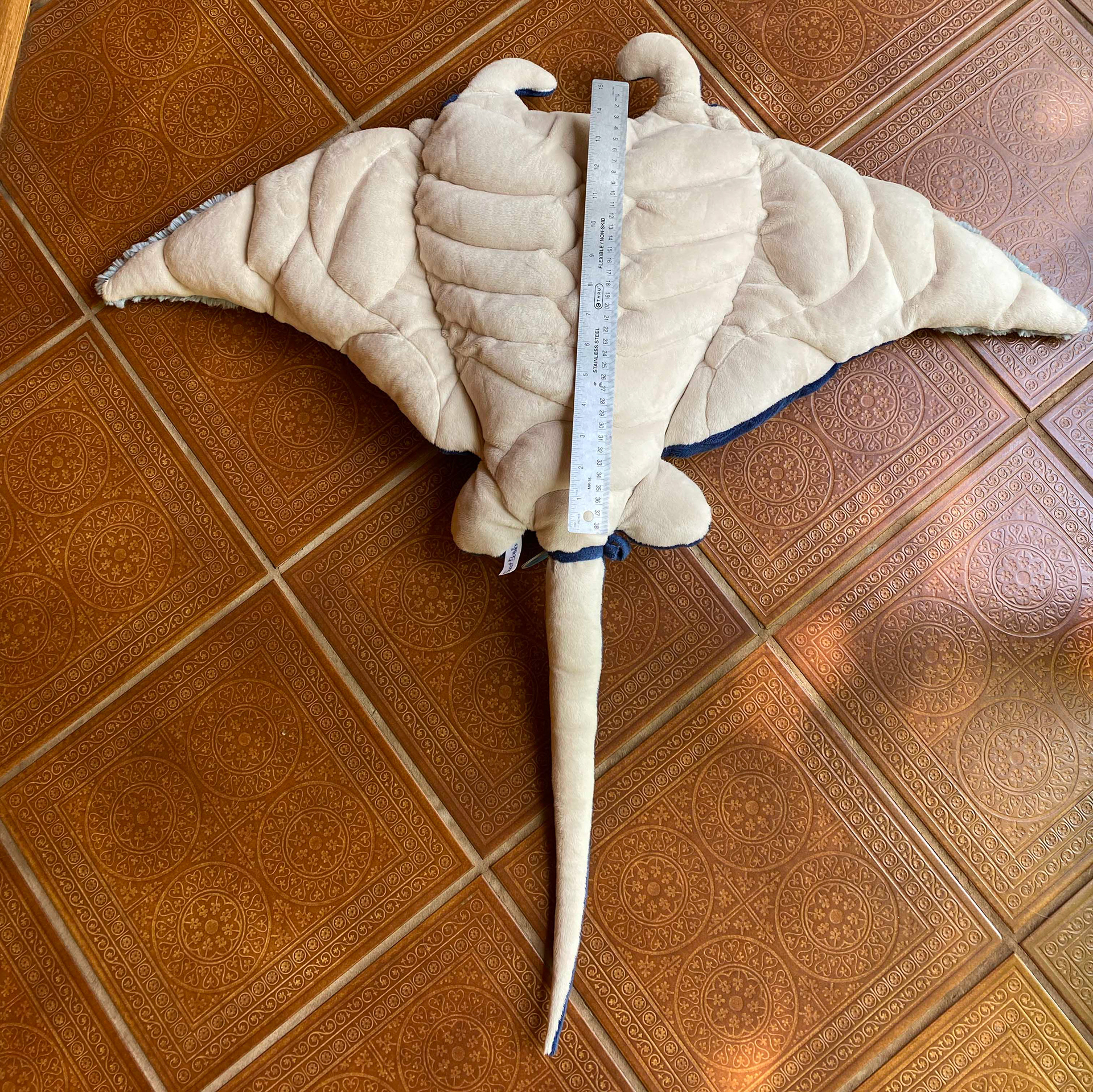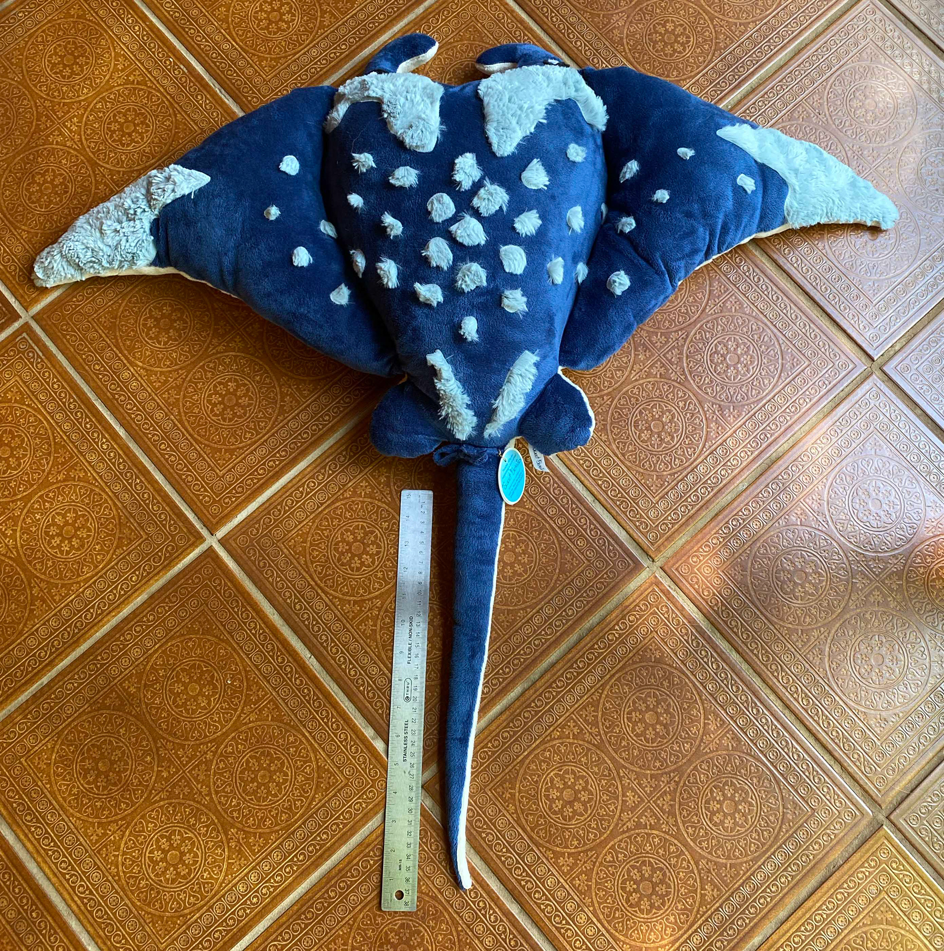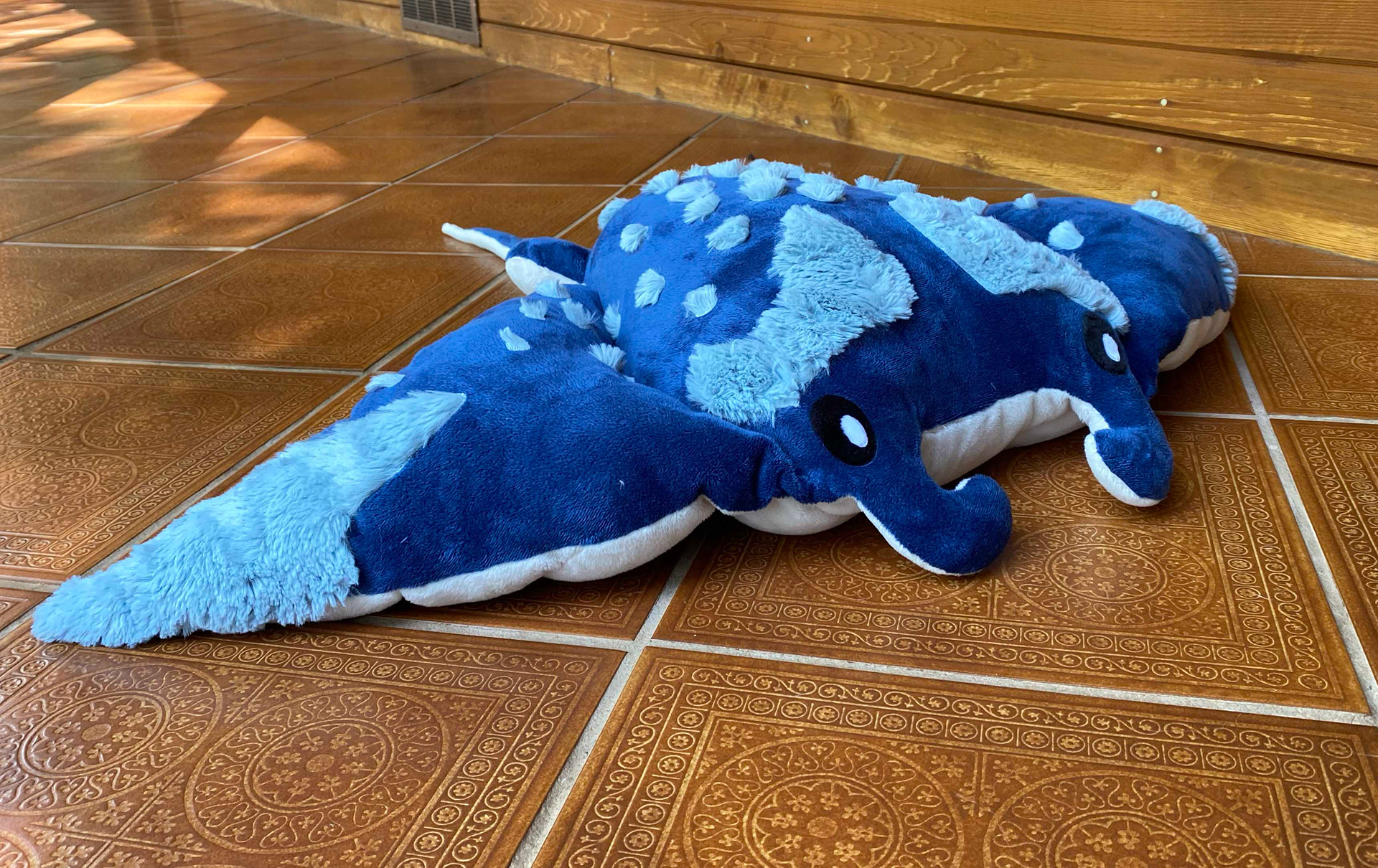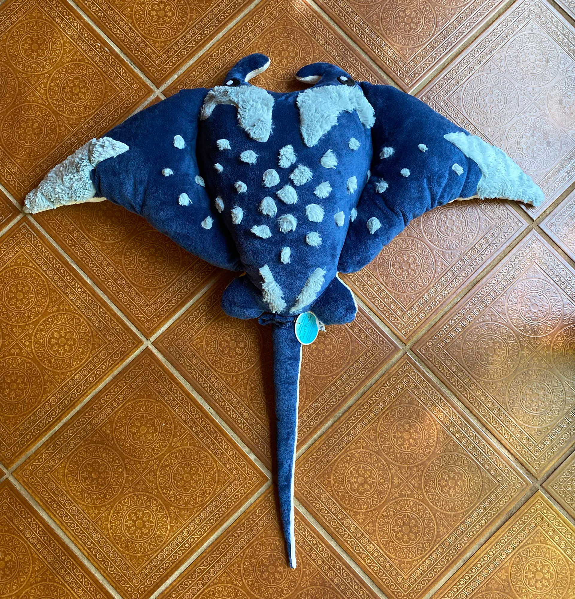Get ready to join a Giant Manta Ray on an adventure into cozy comfort and solitude! Azure The Giant Manta Ray is both stuffed with soft filling, and poly pellet beads adding approximately 8 lbs, creating a delightful weighted experience. The pellets are sewn into pouches on Azure's underside, while its top is soft and cuddly giving you comfort all around.